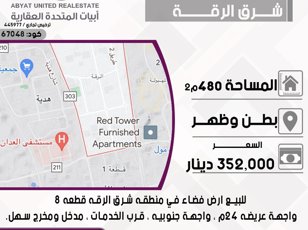 للبيع ارض ابو فطيره مساحه 400 متر الموقع راس ثلاث شوراع ورتداد قريب ..