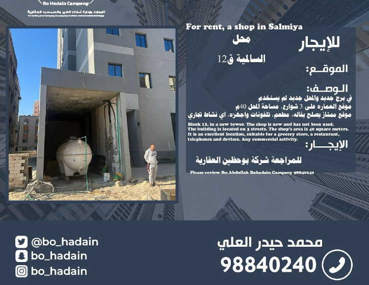 للإيجار محل في السالمية - ق١٢ - في برج جديد و المحل جديد لم يستخدم - ..