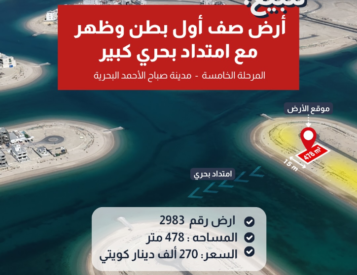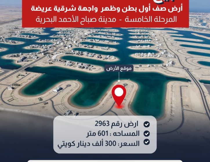 للبيع ارض بصباح الاحمد البحرية صف اول
