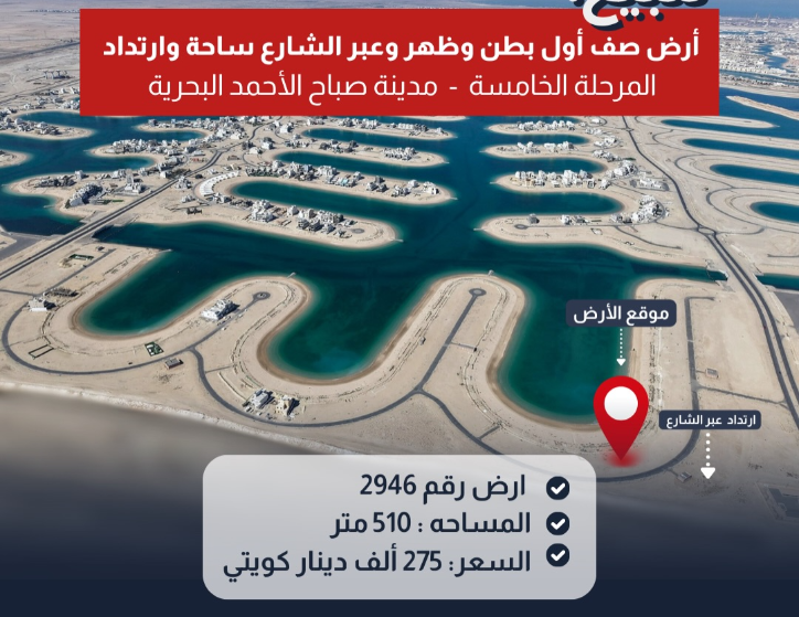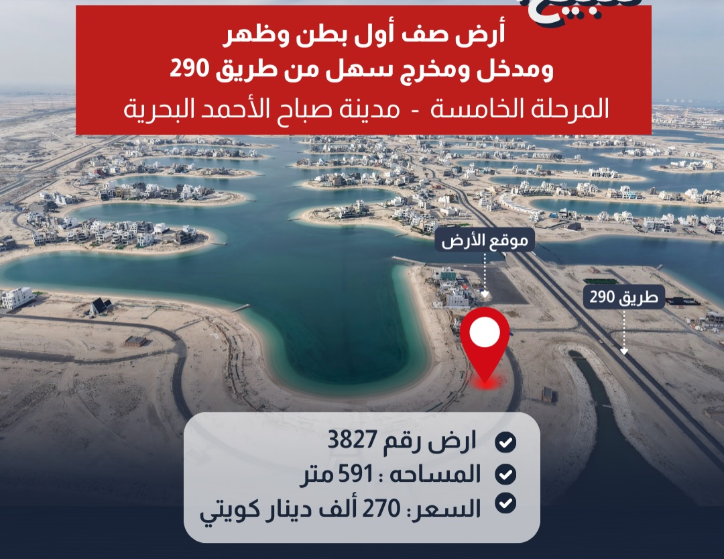 ارض للبيع بصباح الاحمد البحرية المرحلة الخامس...
