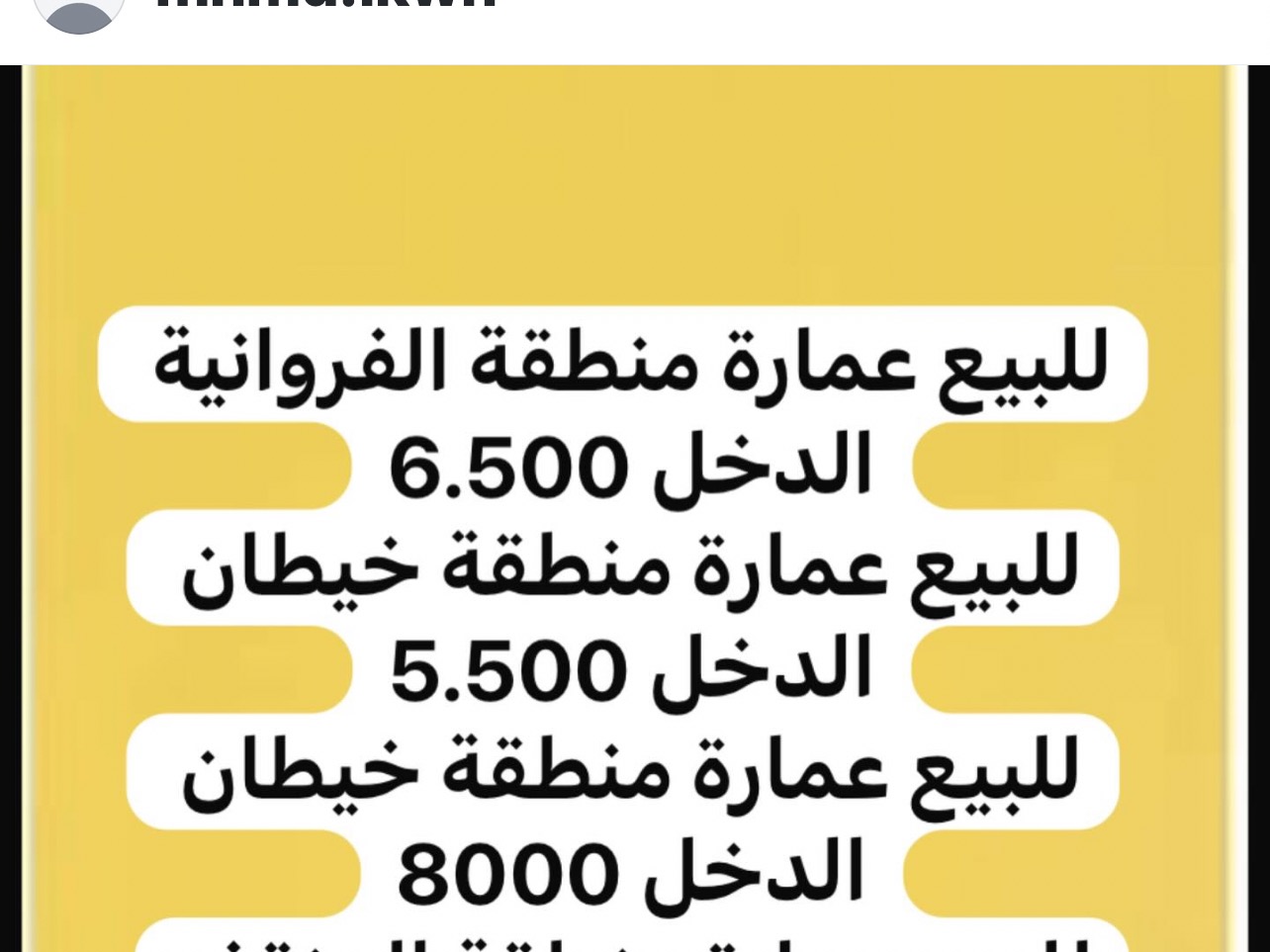 للبيع عماره منطقة خيطان الدخل 5,500الف للبيع عمارة منطقة الفروانية ..